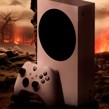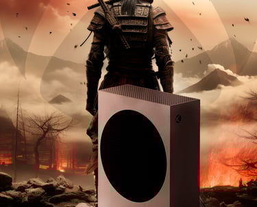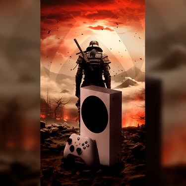 O desafio foi fundir o universo do jogo com a plataforma onde ele será vivenciado, o Xbox Series S. Realizei um trabalho de color grading, iluminação e mesclagem para integrar o console ao cenário devastado, garantindo que a estética da arte estivesse alinhada com a direção visual do jogo. Resultando em uma peça que evoca a imersão e a expectativa de explorar este novo mundo.
